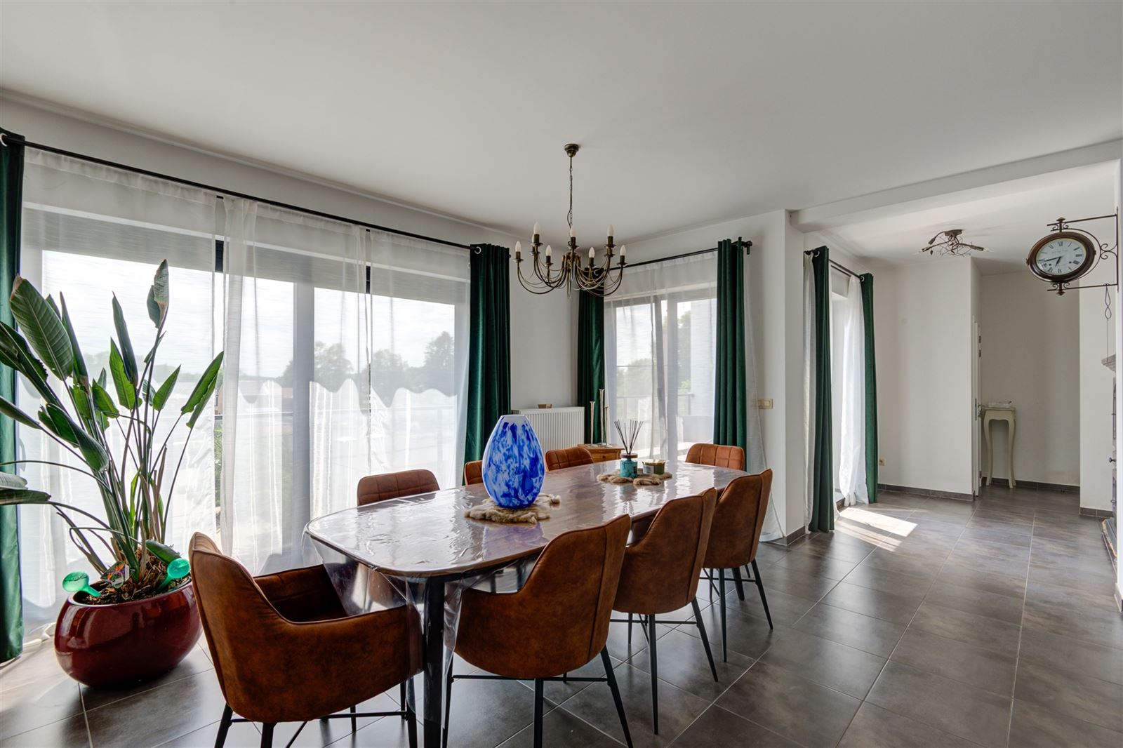 Binnen vind je een ruime woonkamer die baadt in natuurlijk licht, dankzij grote ramen die een prachtig uitzicht bieden. De open eetruimte is ideaal voor gezellige diners, terwijl de keuken uitgerust is met voldoende opbergruimte.