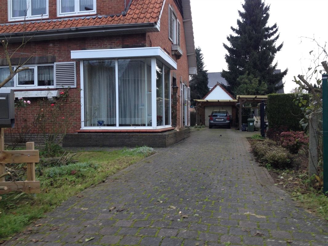 Hier bevindt zich een garage met carport.