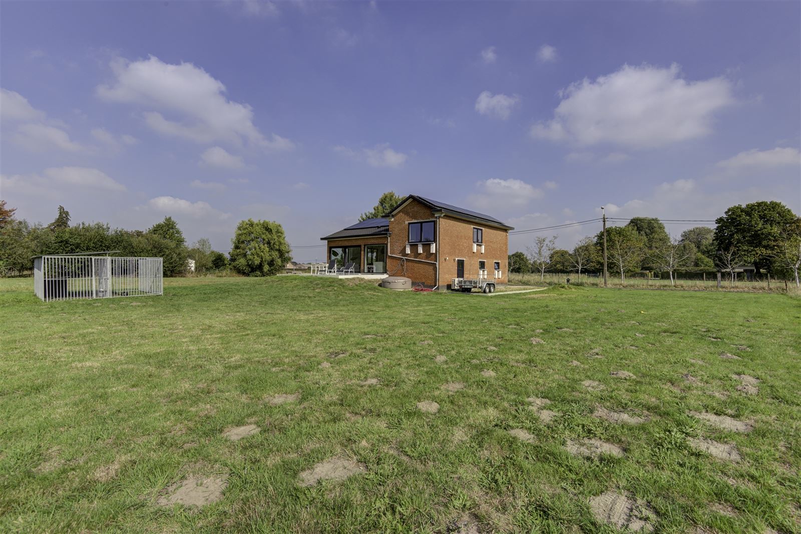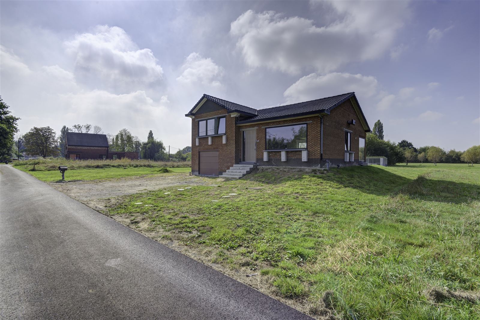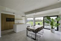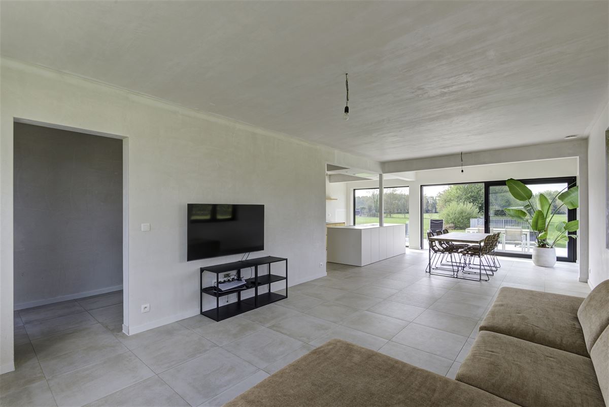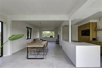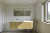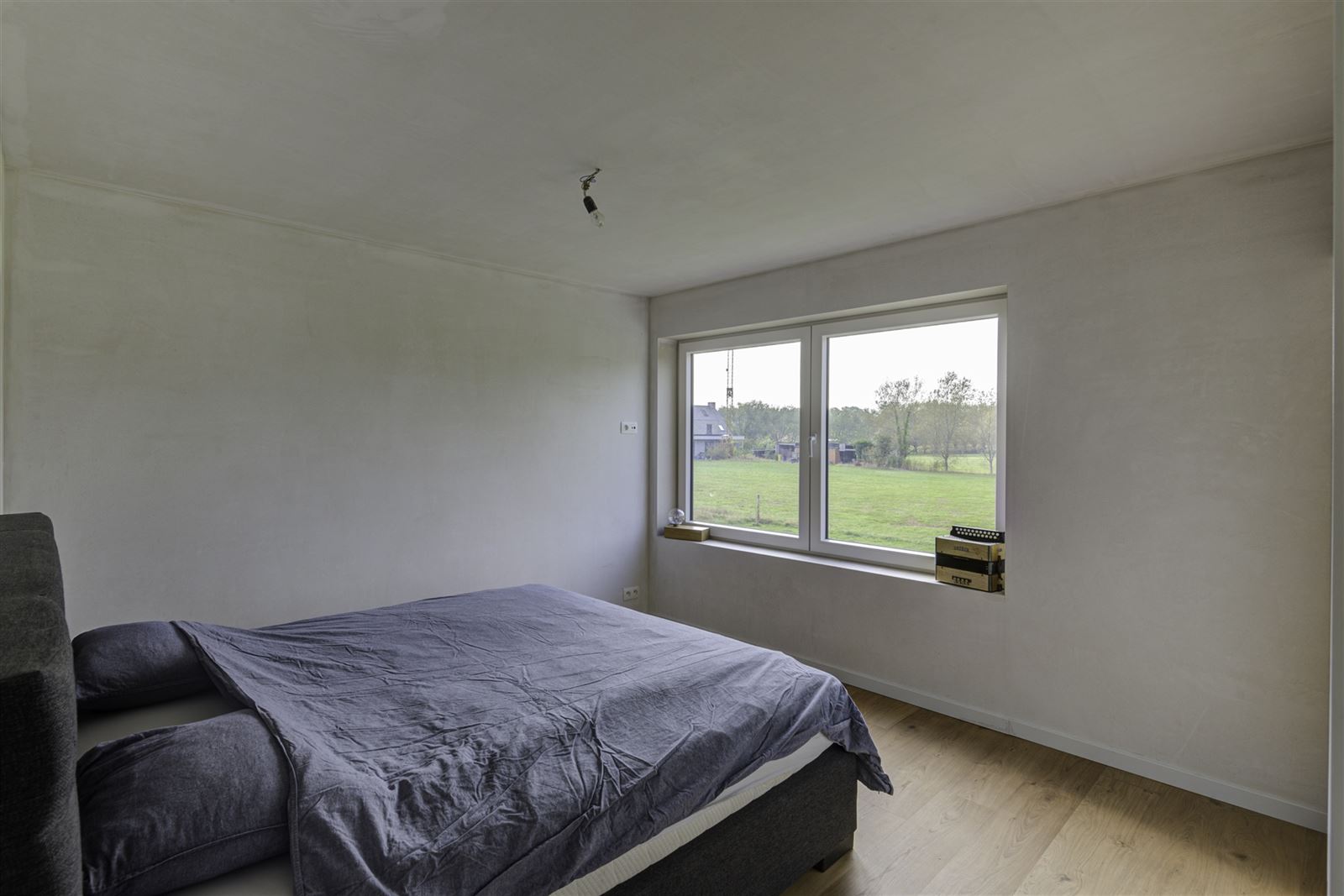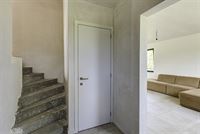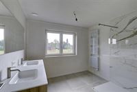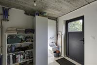 Deze knappe, nog verder af te werken woning, is gelegen in een doodlopende straat, midden in het groen en heeft een prachtig vergezicht. Via de inkomhal die voorzien is van een apart toilet, komen we in de ruime leefruimte met open keuken. Via de keuken kunnen we de trap naar beneden nemen daar bevinden zich de wasplaats, die ook voorzien is van een toilet, en de garage die eventueel nog om te bouwen is naar extra slaapkamer met en-suite badkamer (zie simulatie). Op de eerste verdieping bevinden zich 2 slaapkamers, een badkamer en een dressing. De nachthal geeft ook toegang naar de ruime bergzolder. Verder beschikt de woning nog over een kelder.