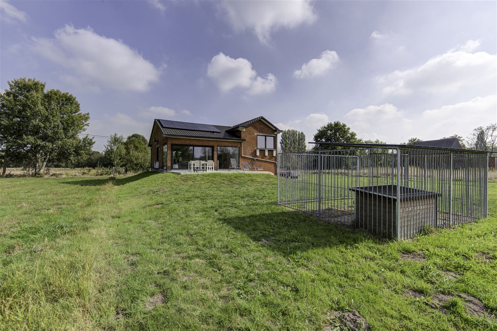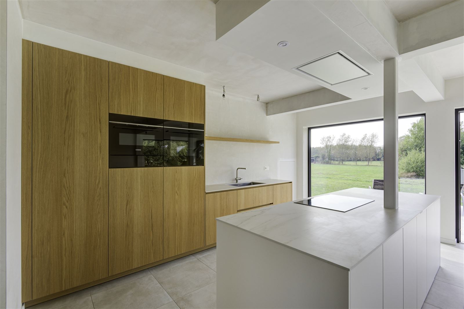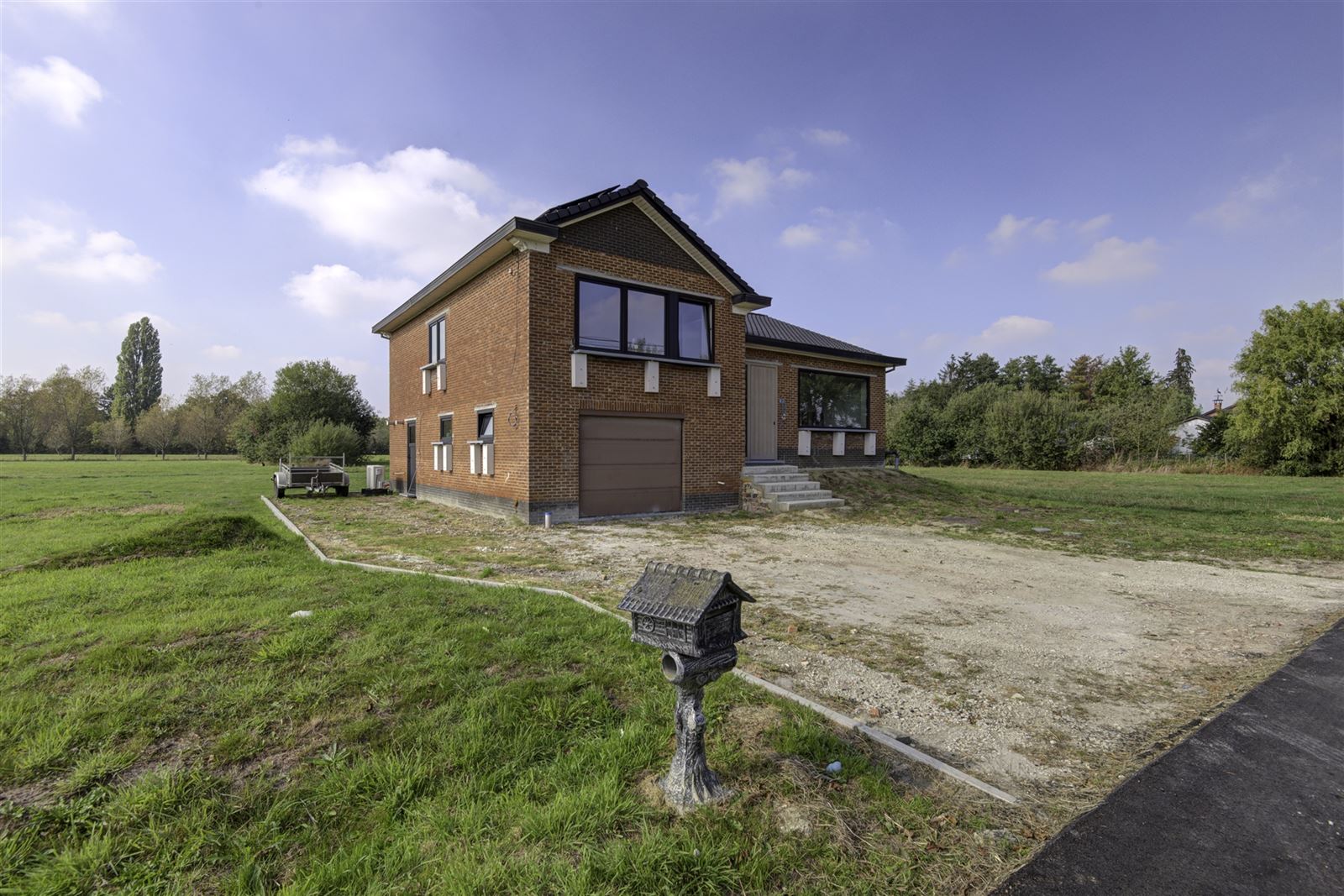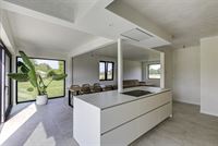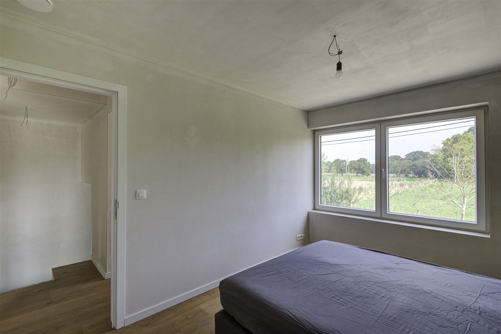 Deze knappe, nog verder af te werken woning, is gelegen in een doodlopende straat, midden in het groen en heeft een prachtig vergezicht. Via de inkomhal die voorzien is van een apart toilet, komen we in de ruime leefruimte met open keuken. Via de keuken kunnen we de trap naar beneden nemen daar bevinden zich de wasplaats, die ook voorzien is van een toilet, en de garage die eventueel nog om te bouwen is naar extra slaapkamer met en-suite badkamer (zie simulatie). Op de eerste verdieping bevinden zich 2 slaapkamers, een badkamer en een dressing. De nachthal geeft ook toegang naar de ruime bergzolder. Verder beschikt de woning nog over een kelder.