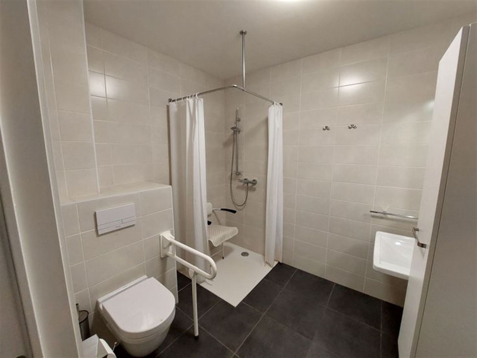 Gelegen in de groene gordel rondom het centrum van Lier treffen we dit recente appartement vlakbij winkels en openbaar vervoer. Bewoning is enkel mogelijk als één van de huurders/ bewoners 60 jaar of ouder is want het maakt deel uit van een groep van assistentiewoningen, maar huurders die de assistentie niet nodig hebben kunnen het huren als gewoon appartement. Het appartement beschikt over een inkomhal, lichtrijke leefruimte met open keuken, berging, één slaapkamer (12m²), badkamer met douche, toilet, lavabomeubel en een zuidwest georiënteerd overdekt terras met uitzicht op "Lierse Vesten".