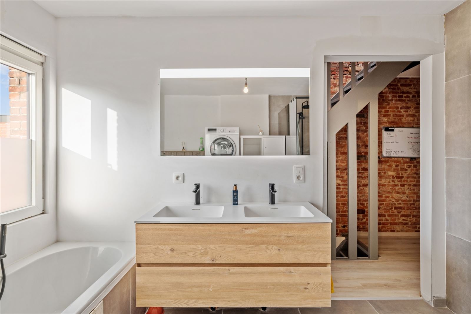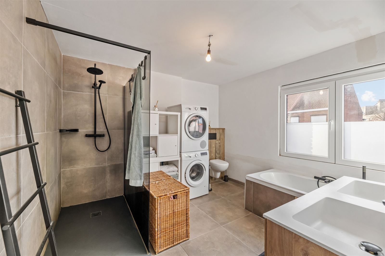De eerste verdieping biedt een nachthal met bureauhoek, een mooie slaapkamer met ensuite dressing en een prachtige, recent vernieuwde badkamer (voorzien van toilet, ligbad, instapdouche + dubbele lavabo) en wasplaats.