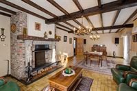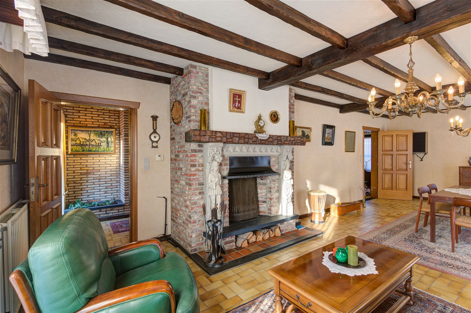 - Lichtrijke woon- en eetkamer met grote raampartijen en open haard