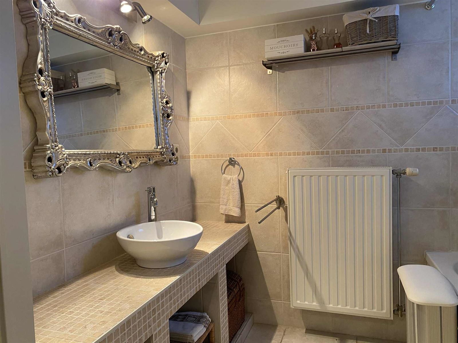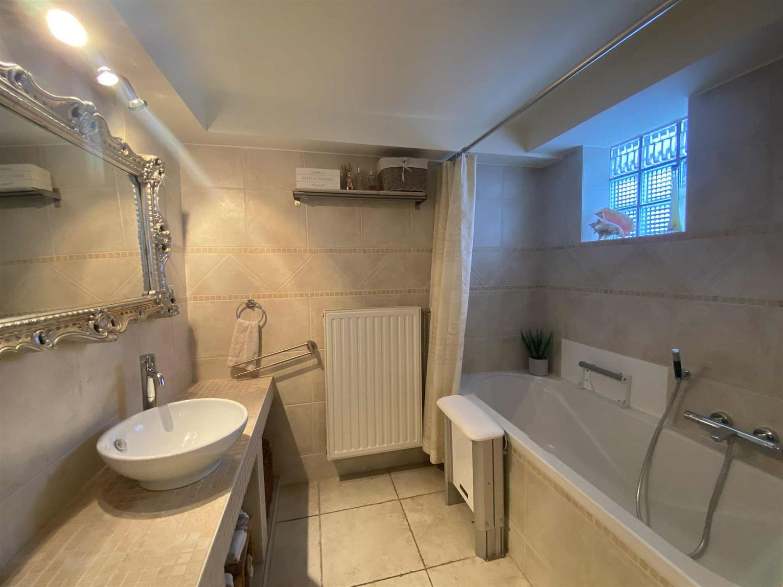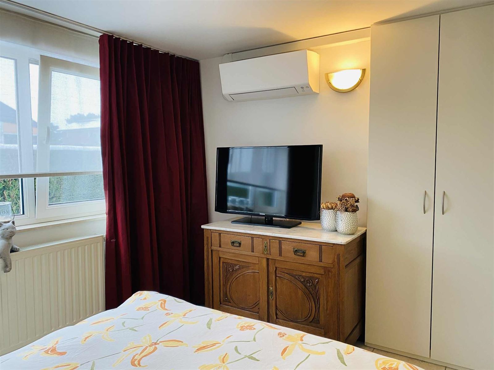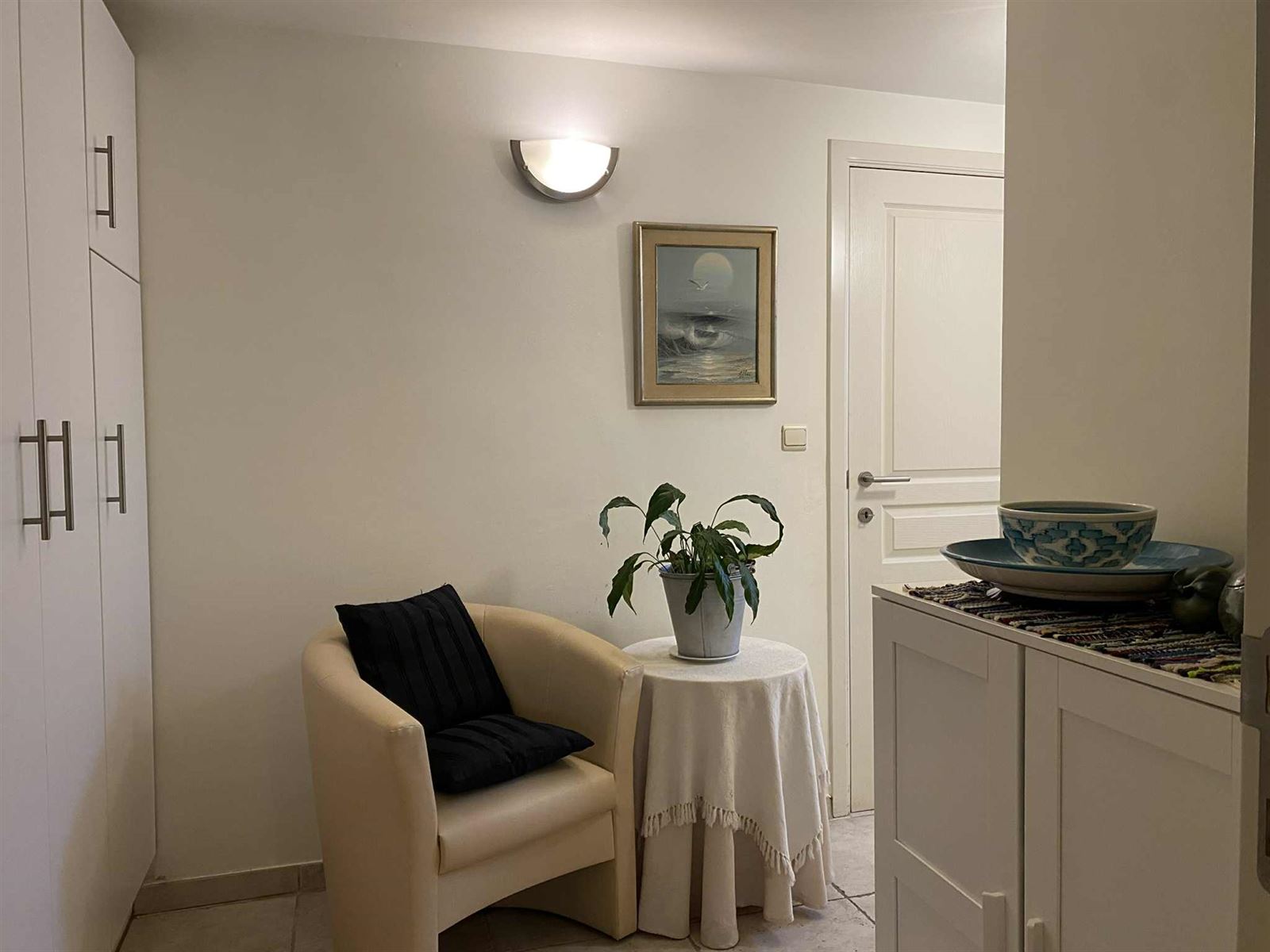 Dit verzorgd appartement verwelkomt u via de inkomhal met toegang tot een apart gastentoilet en de badkamer, uitgerust met een ligbad en lavabomeubel. De slaapkamer beschikt over airconditioning en biedt een aangenaam slaapcomfort. De lichtrijke living (eveneens aircoditioning) met gezellige zithoek sluit naadloos aan op de open keuken, die volledig is uitgerust met alle hedendaags comfort. Verder is er een zeer ruime berging en een praktisch sas met inbouwkasten en een aparte was-/technische ruimte (gemeenschappelijk doorgang).
