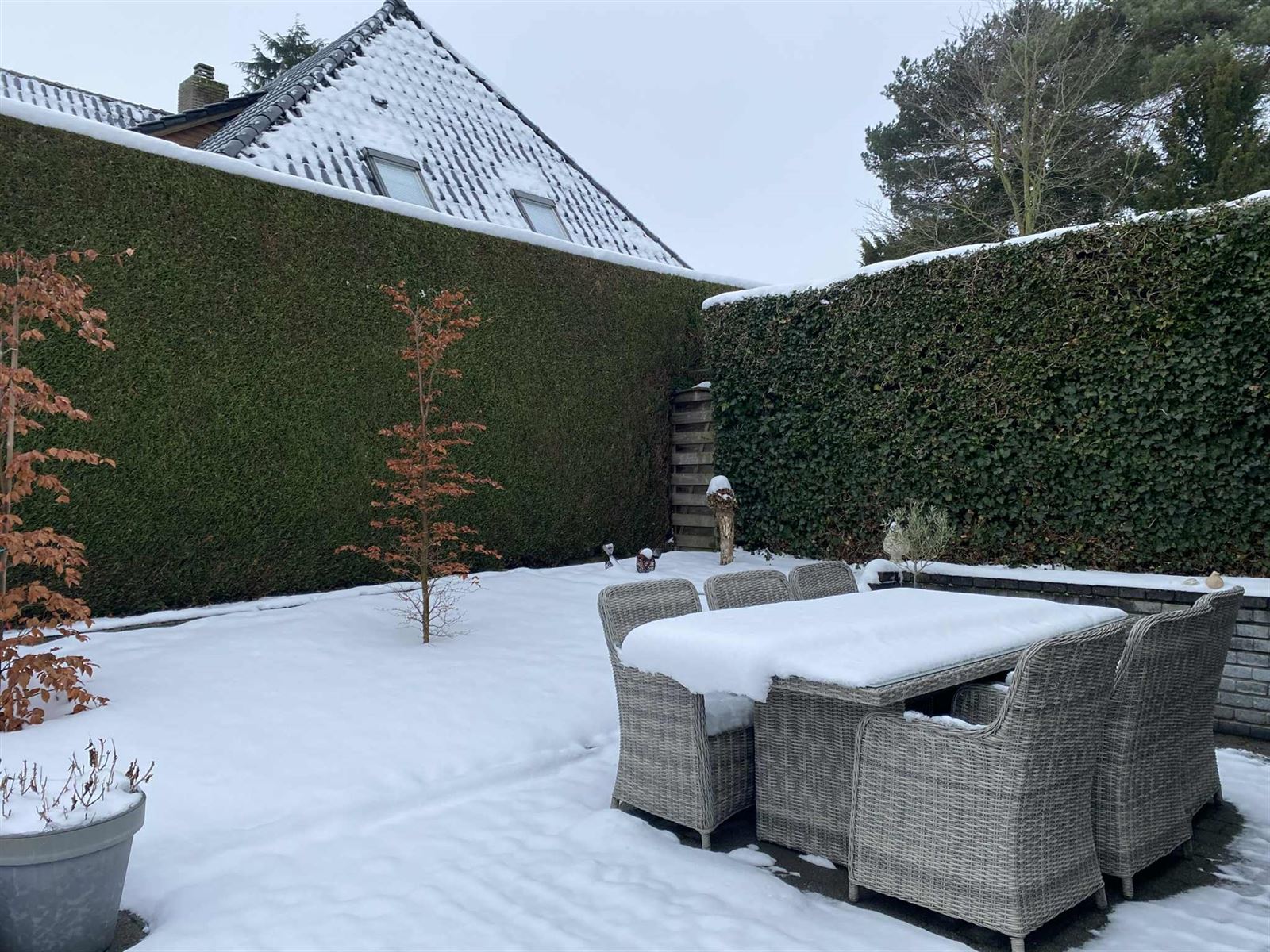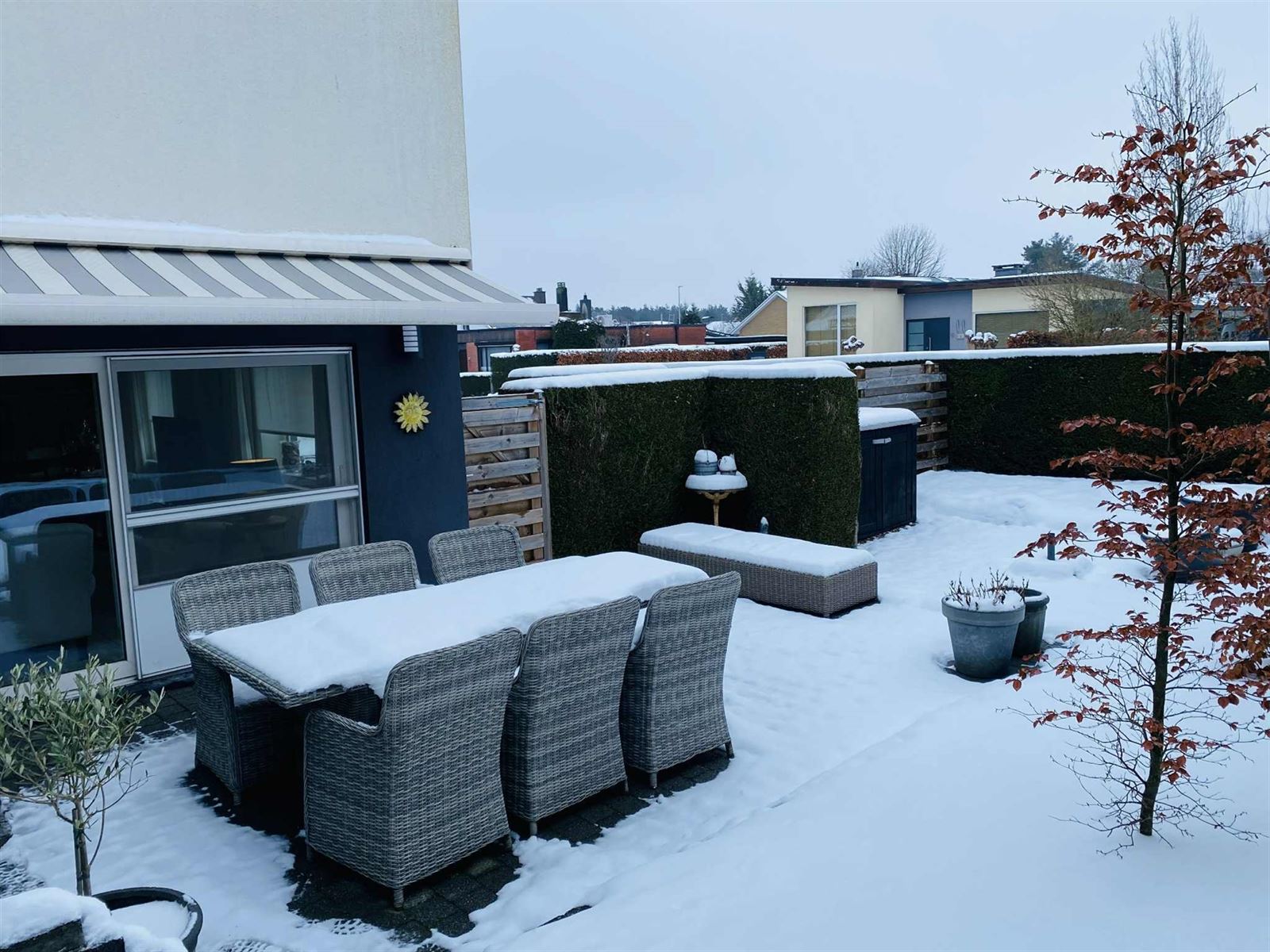 Buiten geniet u van een verzorgde, volledig omheinde tuin met veel privacy en een zuidwestgericht terras van ca. 25 m², ideaal voor gezellige zomeravonden. De wagen kan eenvoudig worden geparkeerd op de oprit.