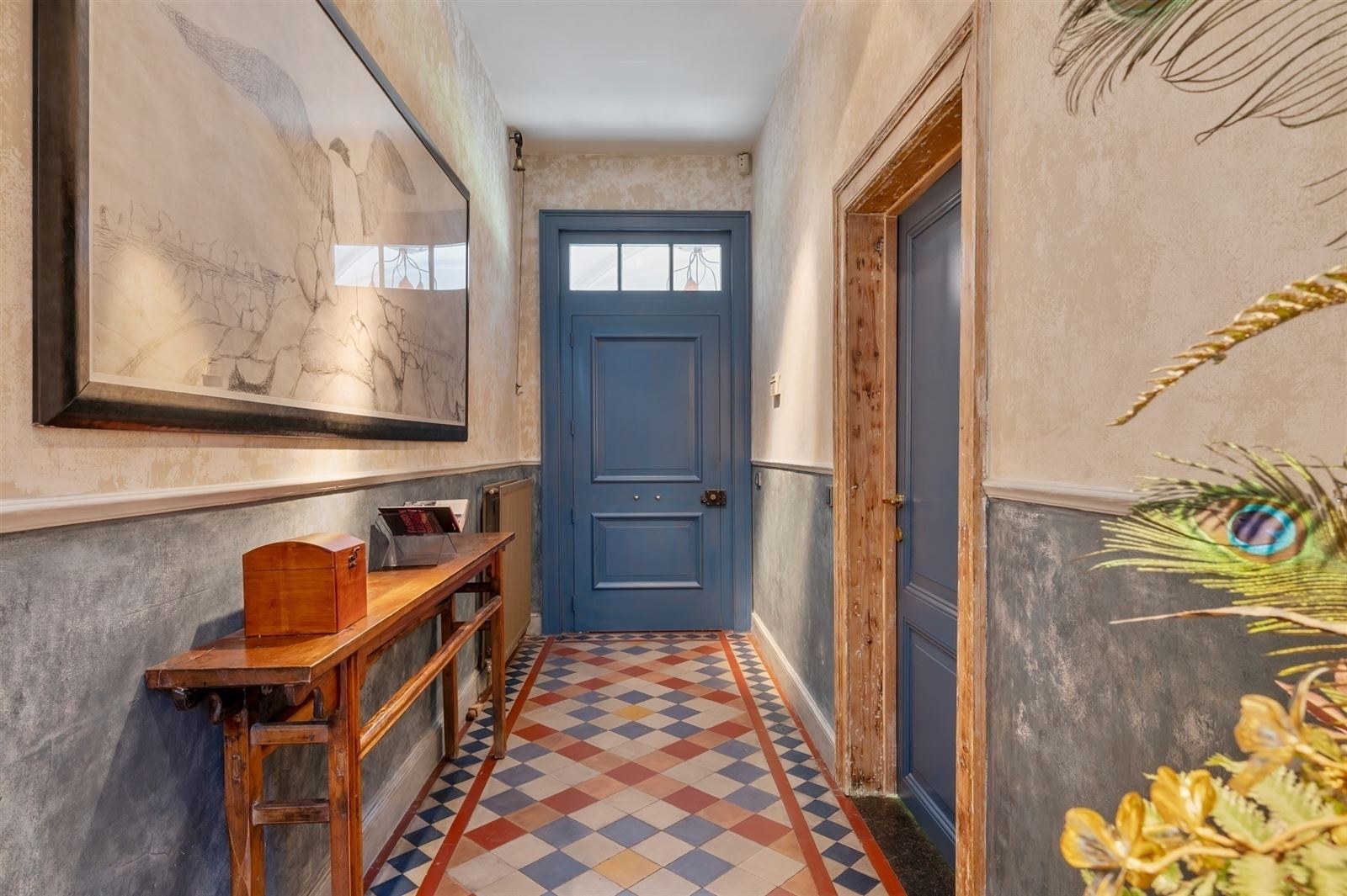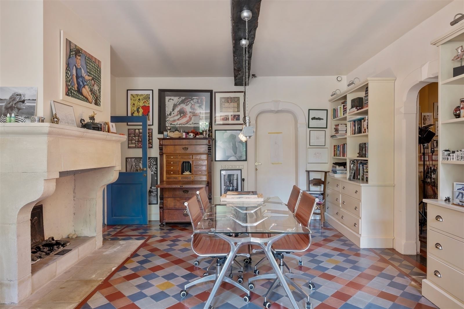 Stap binnen in het elegant historisch landhuis dat tot de verbeelding spreekt. Laat je meevoeren naar een wereld waar charme en sereniteit hand in hand gaan.  De authentieke inkom ademt geschiedenis en klasse, met rechts een gezellige bureauruimte - perfect voor rustig werken of lezen - en een uitnodigende zitplaats met open haard, waar de vlammen op koude dagen voor instant gezelligheid zorgen.