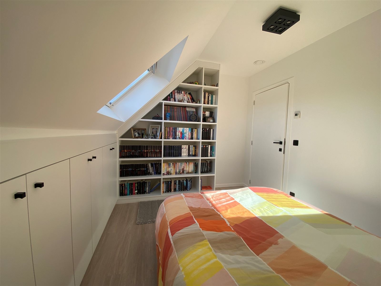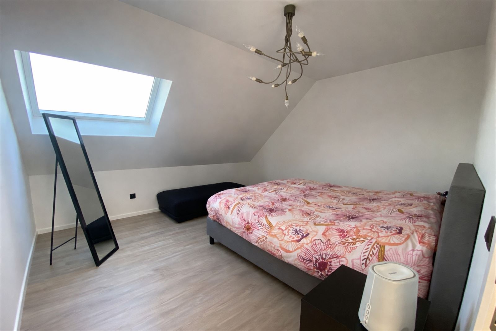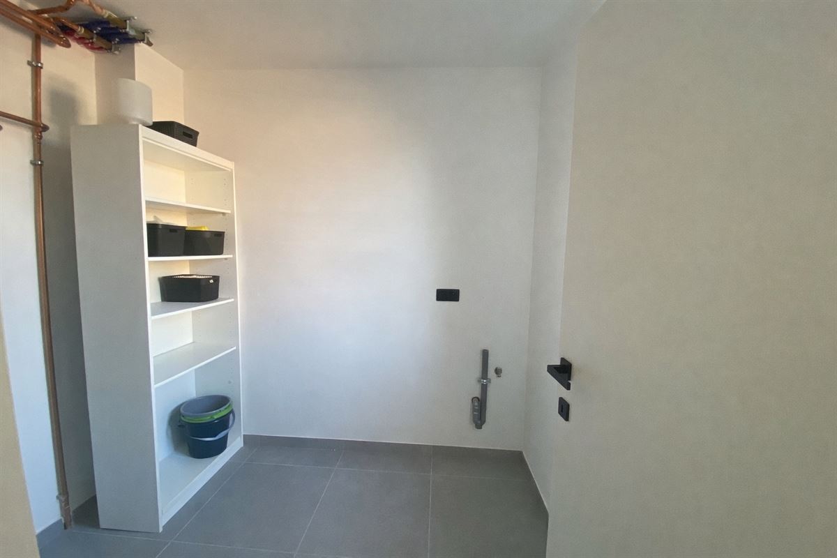 Eerste verdieping: inkomhal met inbouwkast, gastentoilet, ruime lichtrijke leefruimte, volledig uitgeruste moderne keuken, ruime berging, twee terassen (10,50 m² en 7,50 m²) gelegen op het zuiden en het noorden. Tweede verdieping : nachthal, twee slaapkamers respectievelijk 13,75 m² en 10,50 m² waarvan één met inbouwkasten, een dressing, een badkamer met ligbad, douche, toilet en lavabomeubel en een tweede berging/ technische ruimte.