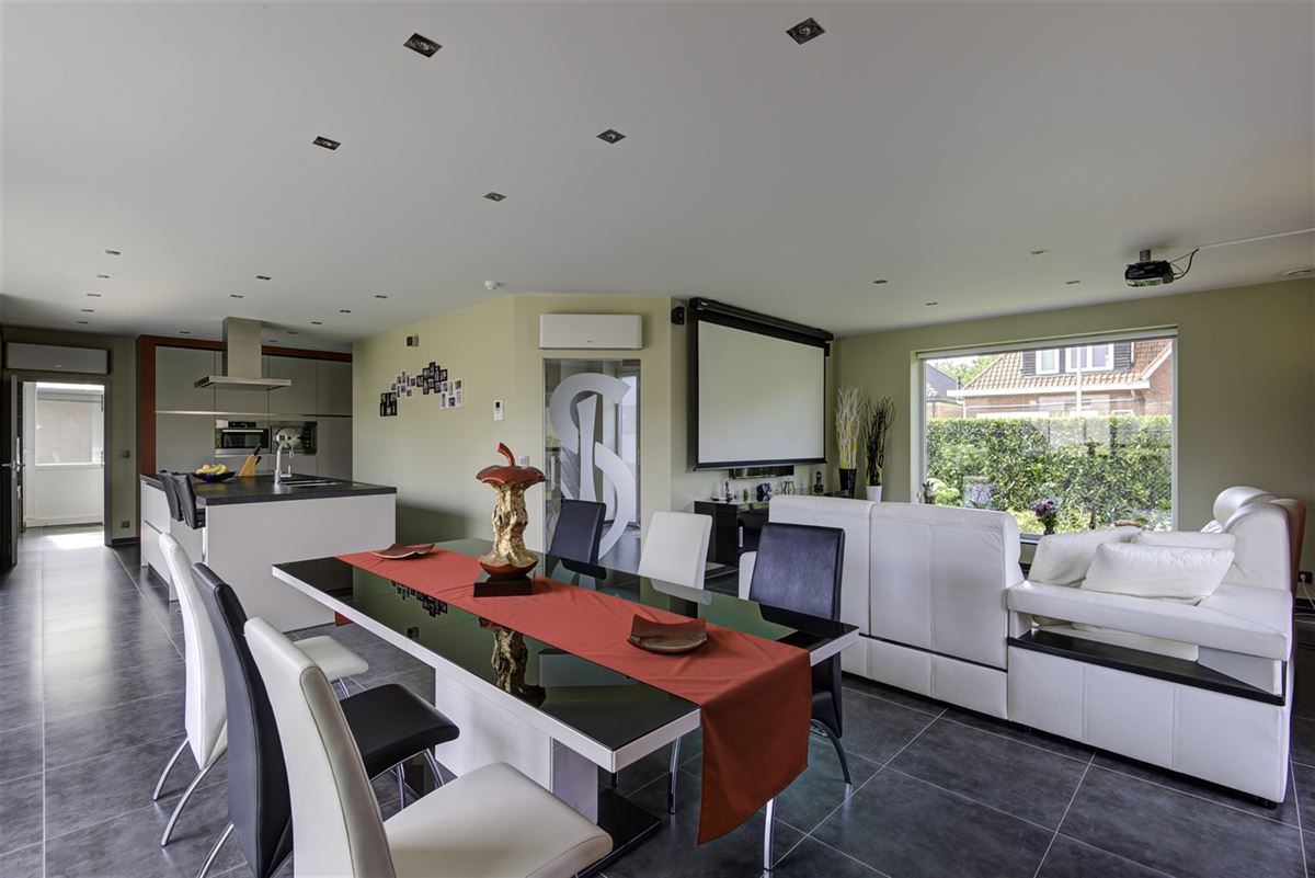 Deze tijdloze en energiezuinige woning is gelegen aan de rand van het centrum van Nijlen, op wandelafstand van het station en winkels. Ze werd door de huidige eigenaars gebouwd met oog voor detail en kwaliteitsmaterialen. Via de ruime inkomhal met gastentoilet, kom je in een lichtrijke leefruimte met zicht op de tuin. Naast de moderne open keuken met kookeiland, bevindt zich een slaapkamer met aansluitend een badkamer. Op de gelijkvloerse verdieping is ook nog en wasplaats aanwezig. Op de eerste verdieping bevinden zich 3 ruime slaapkamers, waarvan één grenst aan het terras. Er is tevens een berging aanwezig. De slaapkamers en berging beschikken allen over zeer praktische inbouwkasten. Verder is er een ruime badkamer met dubbele wastafel, bad, inloopdouche en toilet. Verder beschikt deze woning over een zolder, een kelder, een zeer onderhoudsvriendelijke tuin met een tuinhuis, carport en een ruime parking. Er zijn zonnepanelen, ventilatiesysteem D, vloerverwarming, muurverwarming (badkamers), airco, stofzuigsysteem, stoomoven, ingebouwde kasten, alarm, videofoon en home cinema aanwezig. Alles werd bovendien met zorg onderhouden. Bent u op zoek naar een volledig instapklare woning? Maak dan snel uw afspraak!