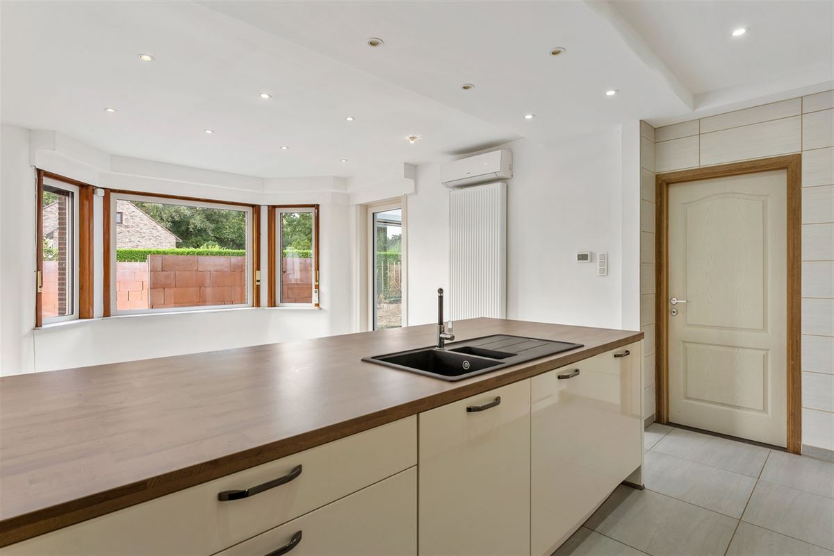 GLV: Inkomhal, leefruimte met vernieuwde open keuken (voorzien van alle comfort), veranda, tussenhal, badkamer (voorzien van lavabo, ligbad), wasplaats & afzonderlijk toilet.