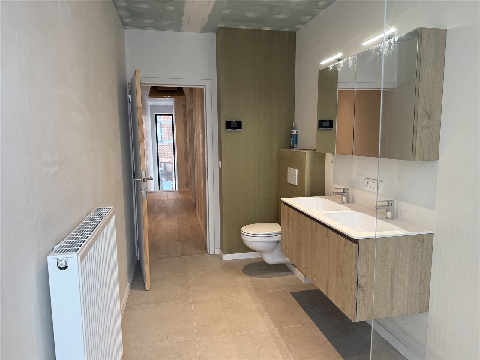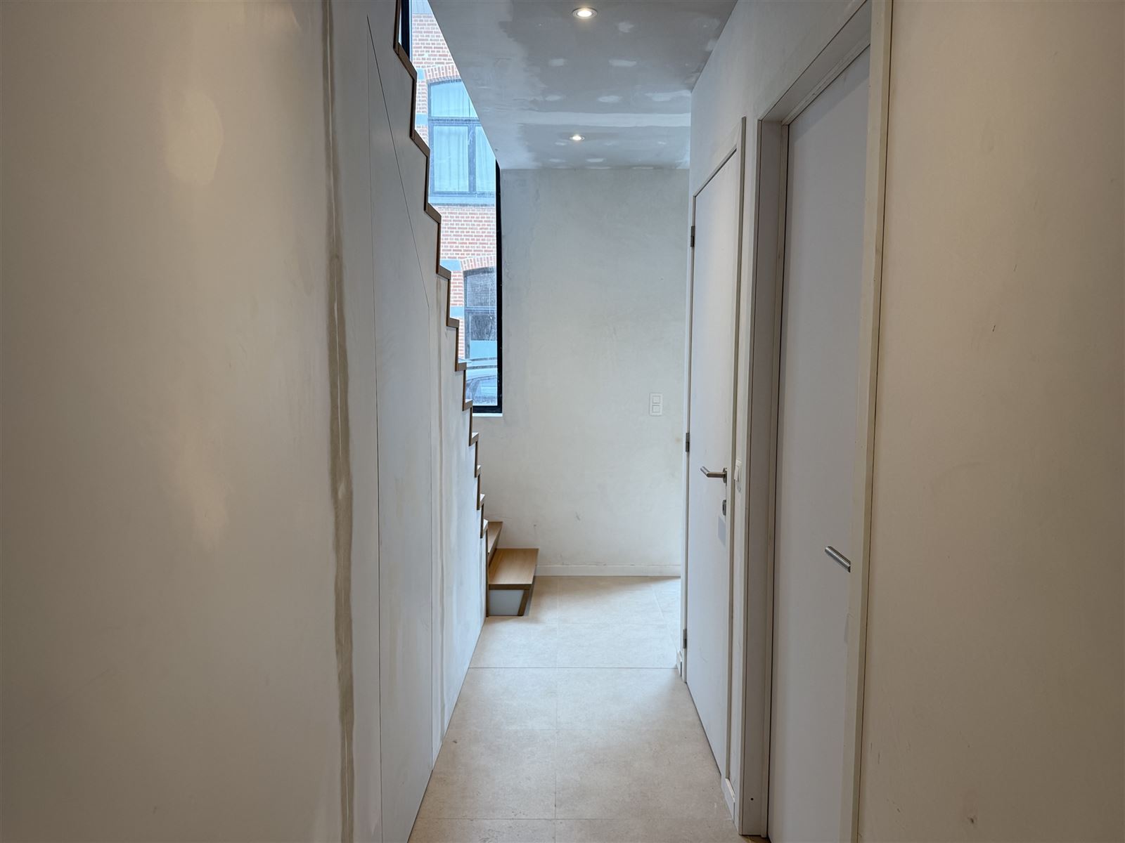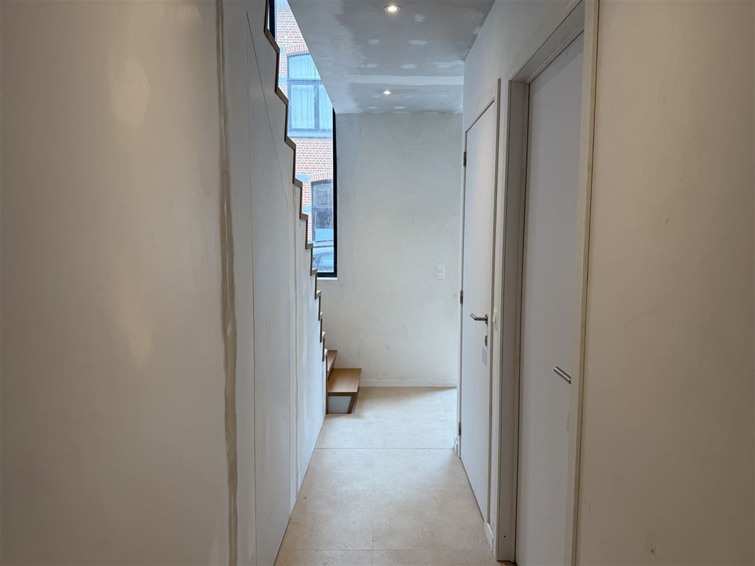 In het hart van Herentals ligt deze knap gerenoveerde woning met parkeerplaats op eigen perceel. Op het gelijkvloers bevinden zich een ruime inkomhal met apart toilet, een berging waar plaats voorzien is voor wasmachine en droogkast, en een lichtrijke leefruimte met open keuken en patio. Op de eerste verdieping zijn 2 slaapkamers aanwezig, verder is hier nog een badkamer aanwezig die voorzien is van douche, dubbele wastafel en toilet. In de nachthal kan toegang genomen worden tot de bergzolder via het zolderluik. Er is ook nog een kelder aanwezig, deze heeft toegang via een (verborgen) deur onder de trap in de inkomhal. Het perceel is langs de achterzijde bereikbaar via een sertivitudeweg. Deze woning werd afgewerkt met oog voor detail en kwaliteitsmaterialen en is schilderklaar. Ze is voorzien van vloerverwarming en ventilatie D. Een E-peil van 60 zal zeker gehaald worden. Indien gewenst kunnen er, mits meerprijs, nog zonnepanelen bijgeplaatst worden. Er mag ook nog een tuinberging geplaatst worden. De kleur van de afwerking van de spatwand in de keuken kan nog door de koper gekozen worden. Maak snel uw afspraak!