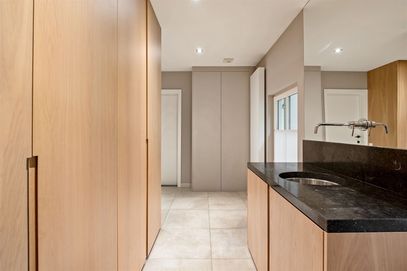 Bij het binnenkomen word je verwelkomd in een ruime inkomhal met vestiaire & gastentoilet met handwasser. De aangename leefruimte baadt in het licht en biedt een harmonieus evenwicht tussen gezelligheid en openheid. Aansluitend bevindt zich een afsluitbare bureauruimte/salon - ideaal voor wie thuis werkt.