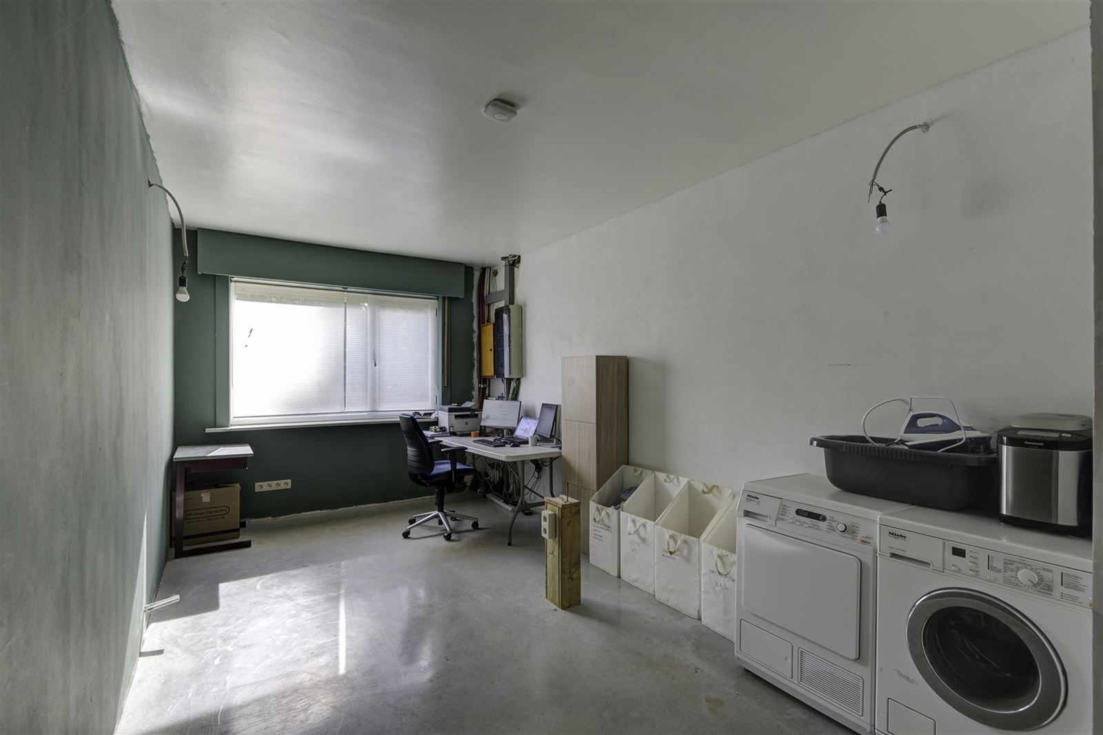 Op de gelijkvloerse verdieping bevinden zich een ruime leefruimte met open keuken, een badkamer met douche, een apart toilet, een slaapkamer, een inkomhal, een bering en een polyvalente ruimte die kan ingericht worden als praktijkruimte of bureau. Hier kan indien gewenst ook een aparte ingang gecreëerd worden.