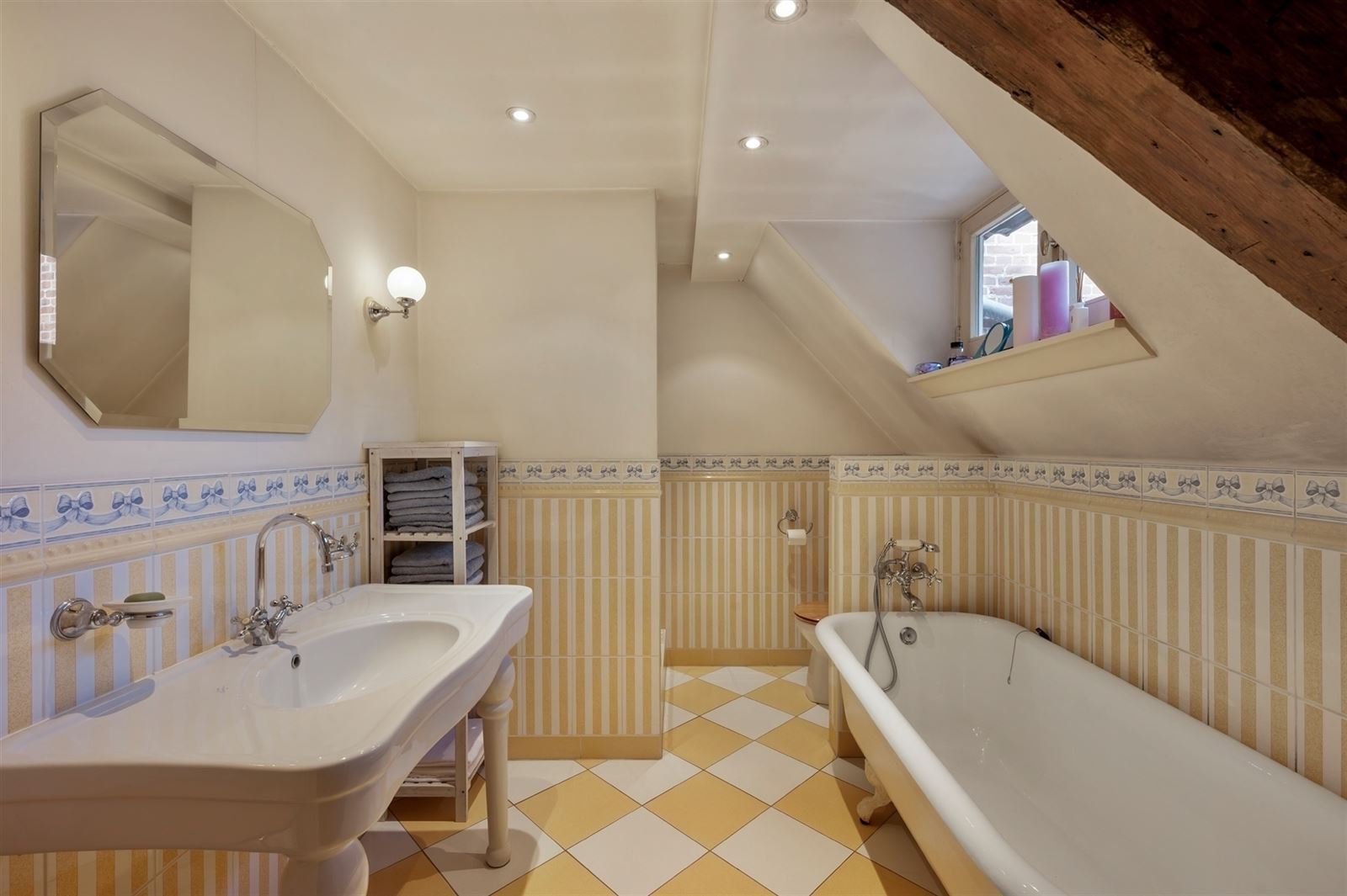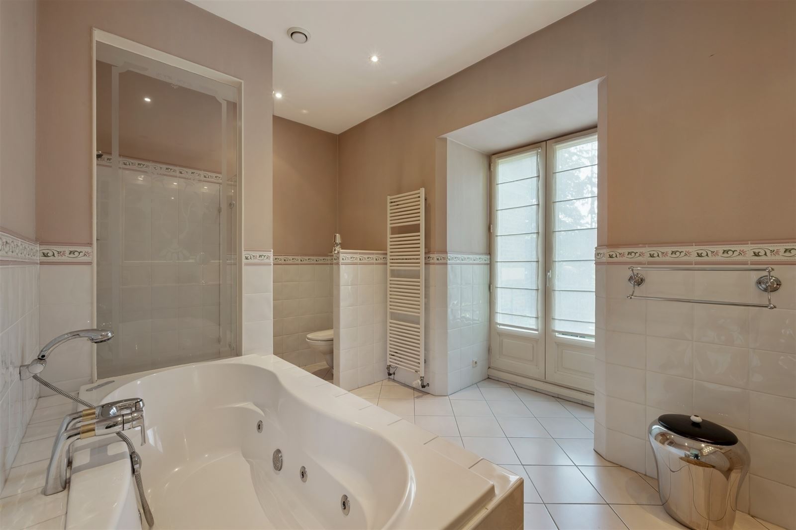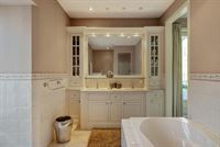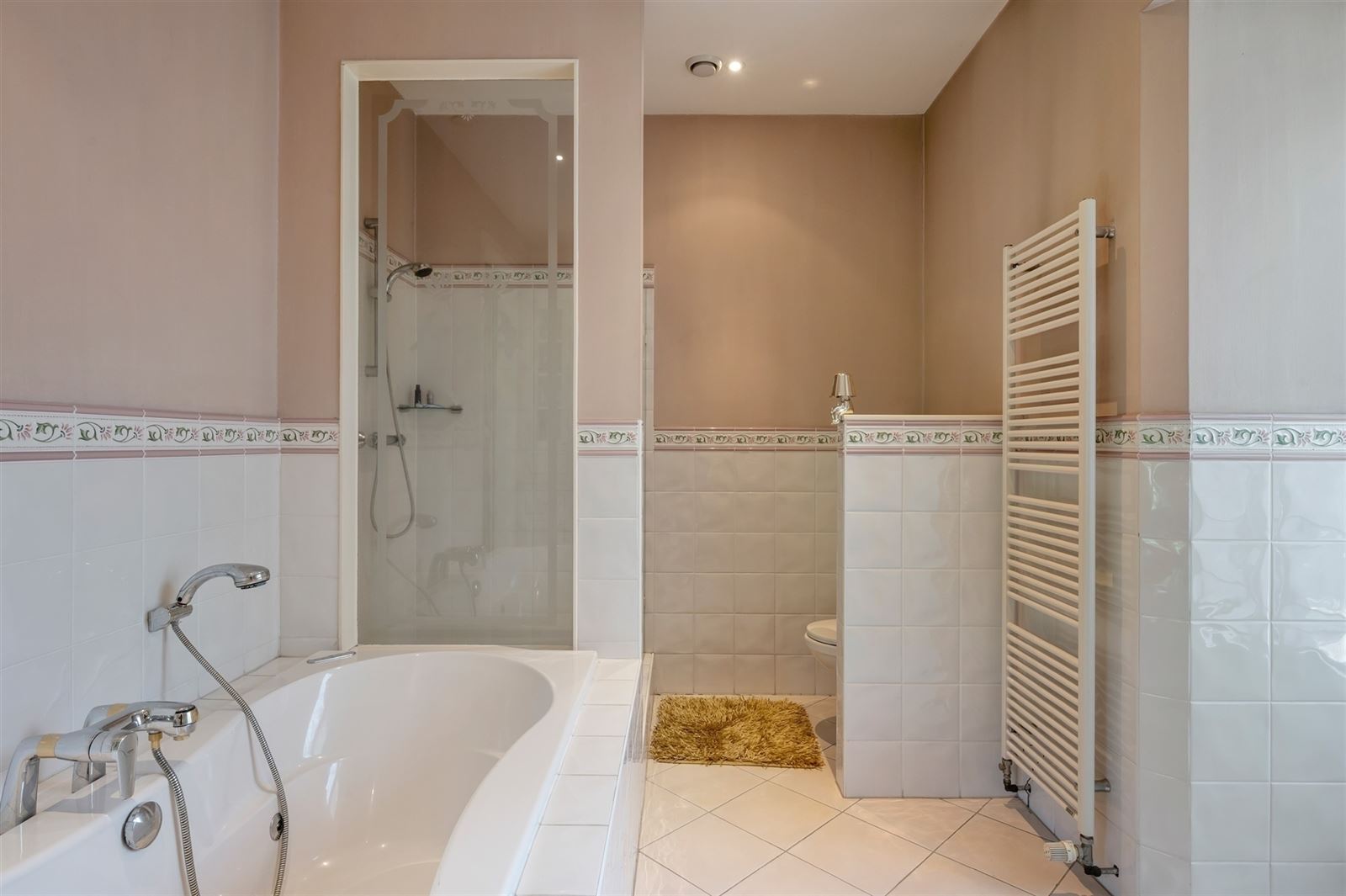 Aansluitend badkamer met bad, douche, toilet en dubbele lavabo.