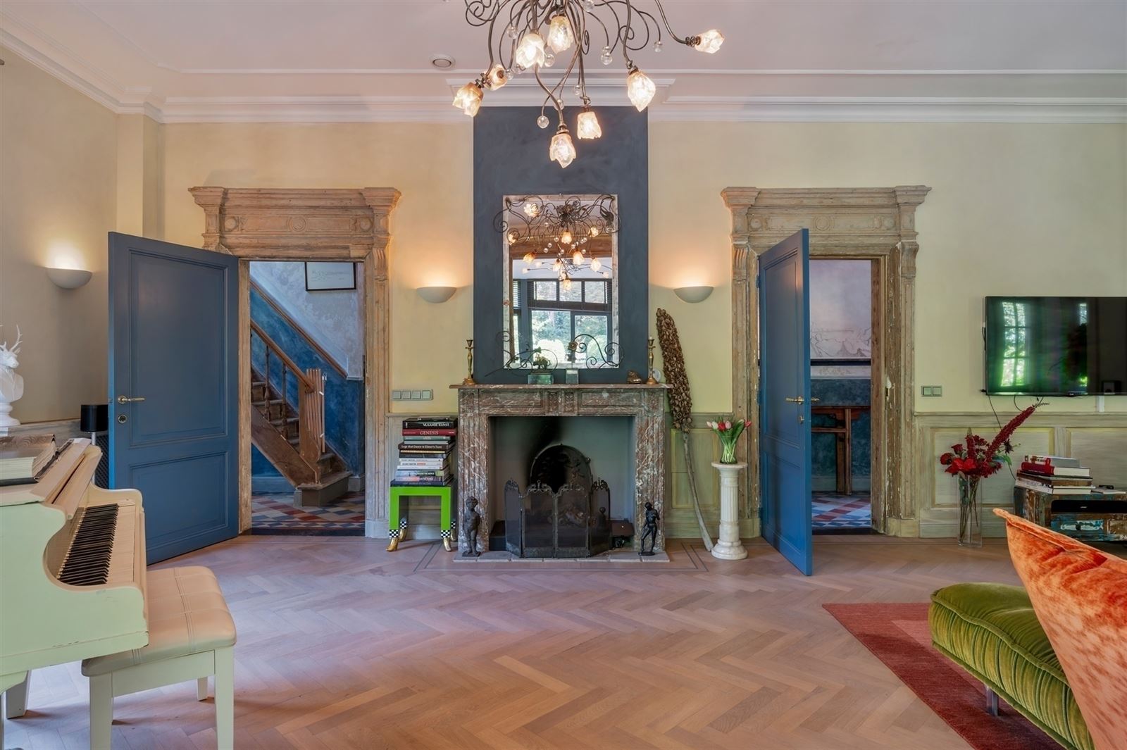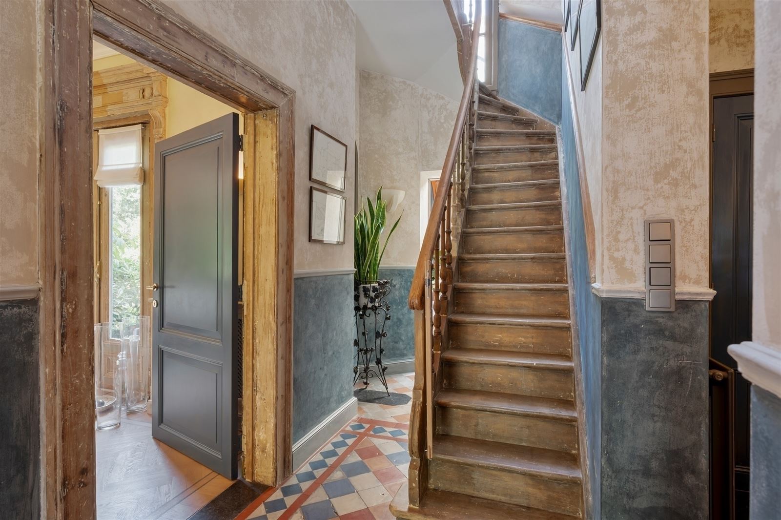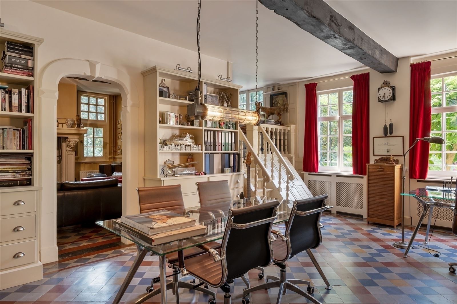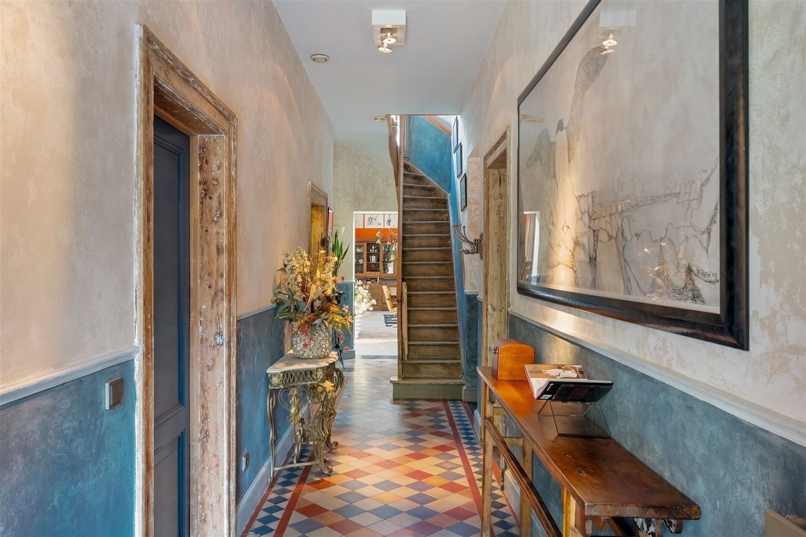 Stap binnen in het elegant historisch landhuis dat tot de verbeelding spreekt. Laat je meevoeren naar een wereld waar charme en sereniteit hand in hand gaan.  De authentieke inkom ademt geschiedenis en klasse, met rechts een gezellige bureauruimte - perfect voor rustig werken of lezen - en een uitnodigende zitplaats met open haard, waar de vlammen op koude dagen voor instant gezelligheid zorgen.