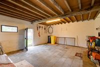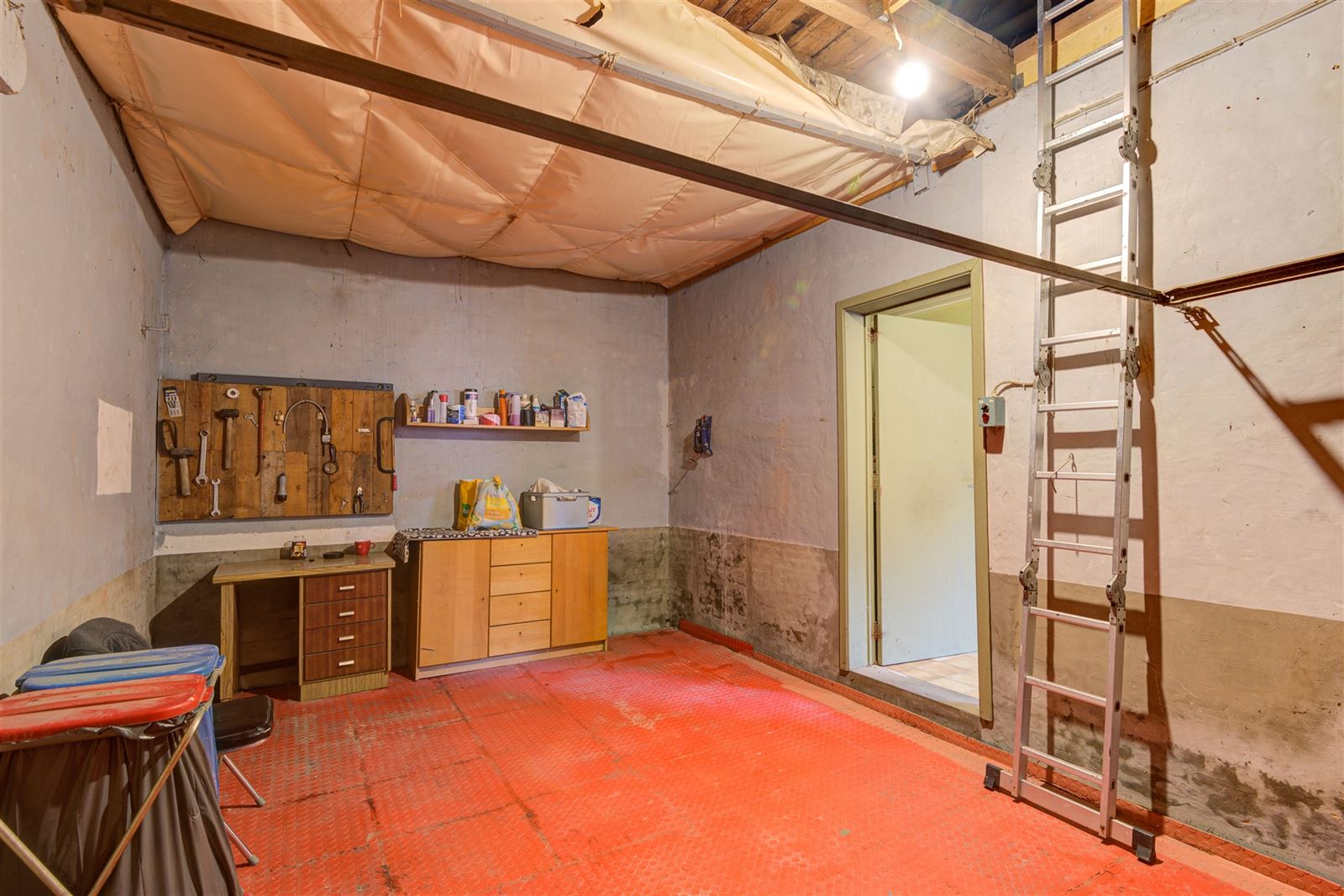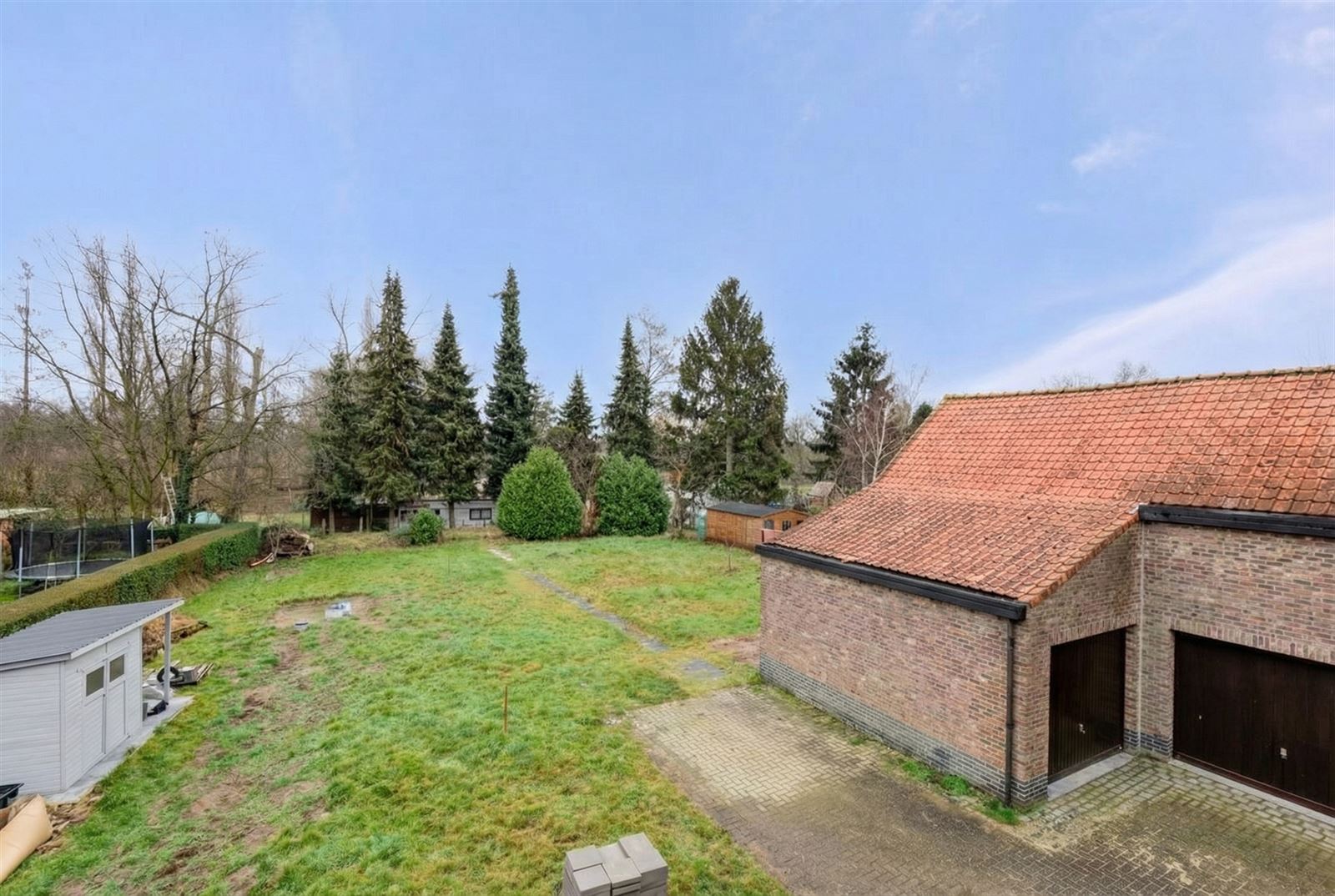 Achteraan het perceel bevinden zich twee garages en een ruim atelier — ideaal voor hobbyisten, zelfstandigen of wie extra opslagruimte nodig heeft.