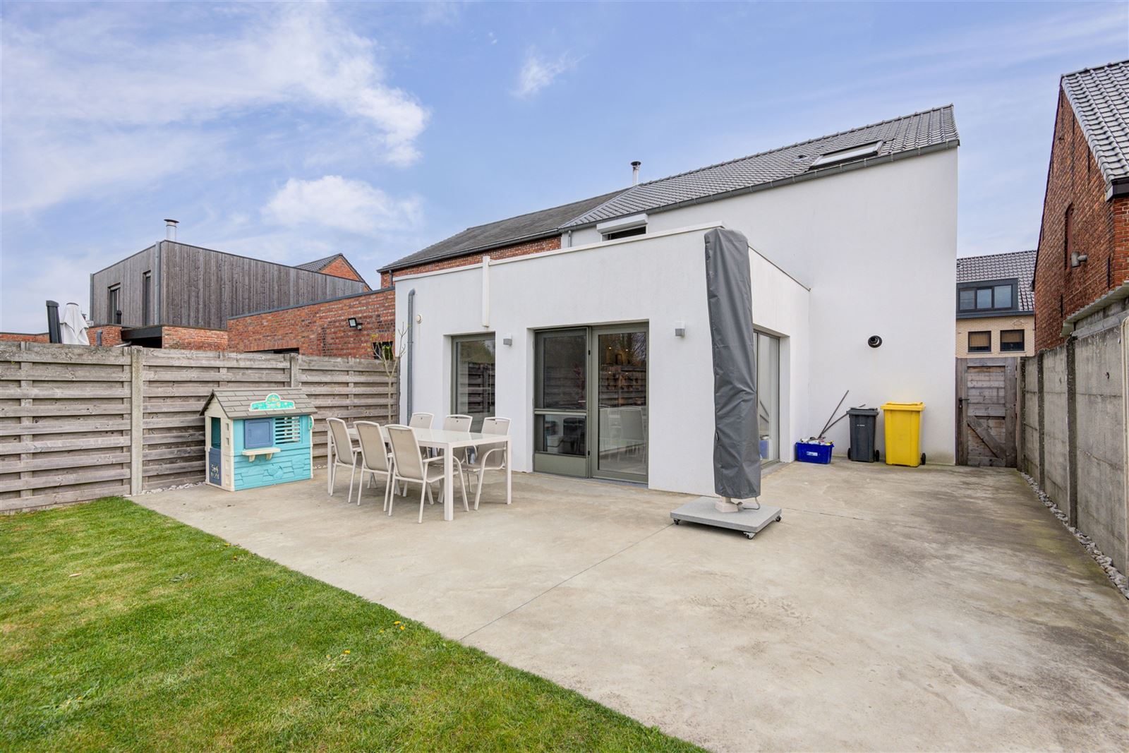 Verder beschikt de woning over een gedeeltelijke kelder, ideaal voor extra stockage. Buiten geniet u van een volledig omheinde tuin met een kapschuur, perfect voor extra opslag, hobbyruimte of gezellige buitenmomenten.