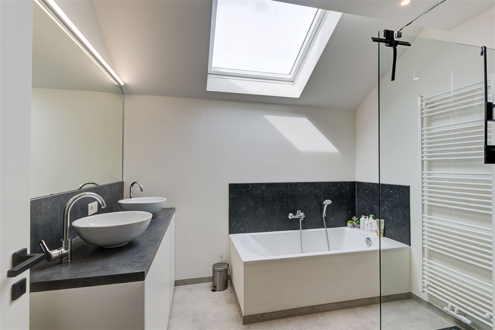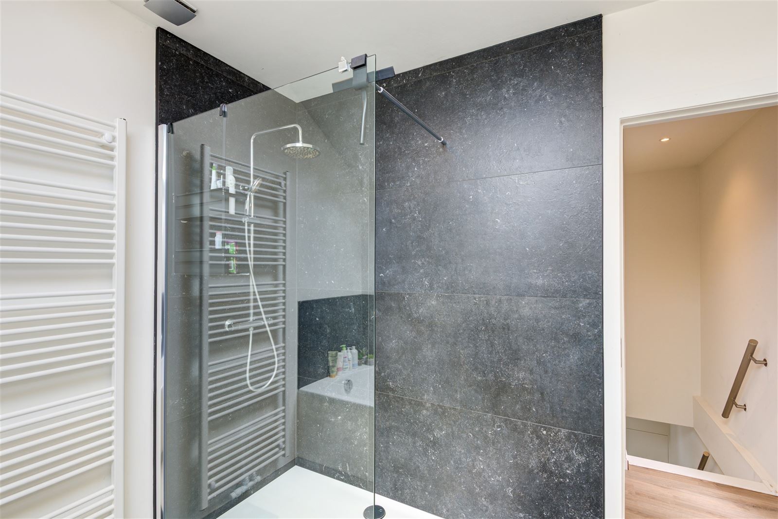 Nachthal, 3 sfeervolle slaapkamers waarvan één met een leuke mezzanine. De badkamer is uitgerust met een inloopdouche, ligbad en dubbel lavabomeubel. Daarnaast is er een apart toilet.