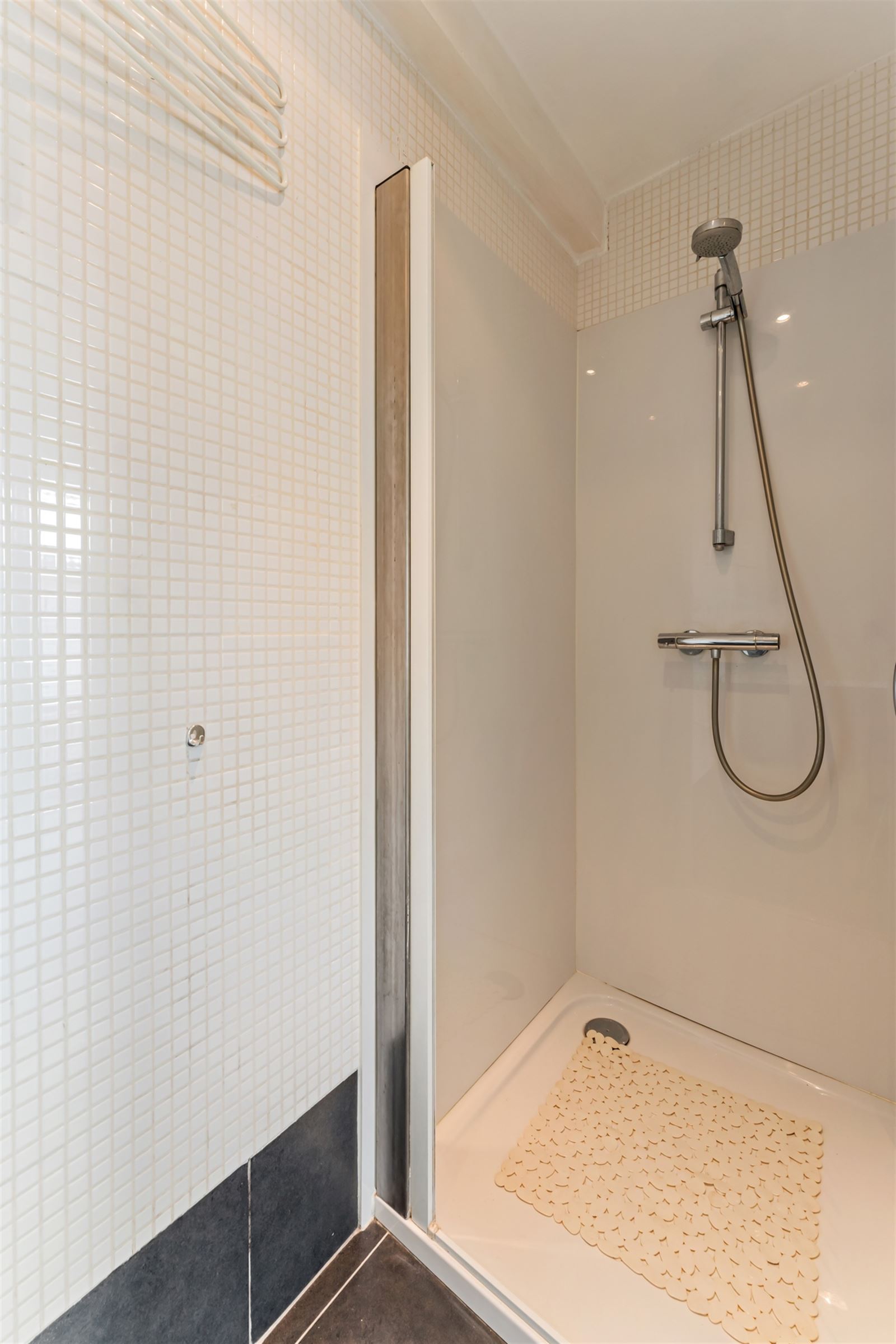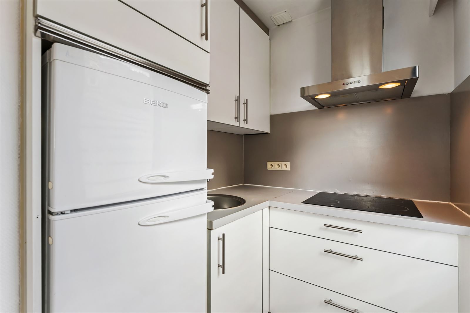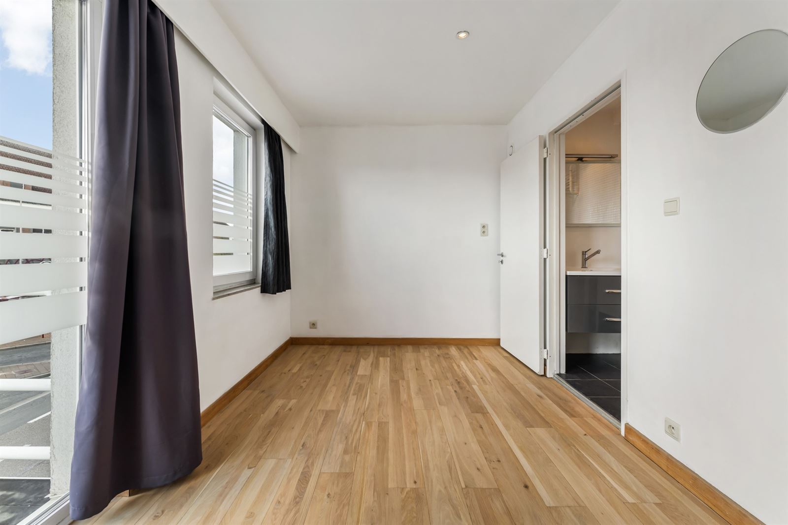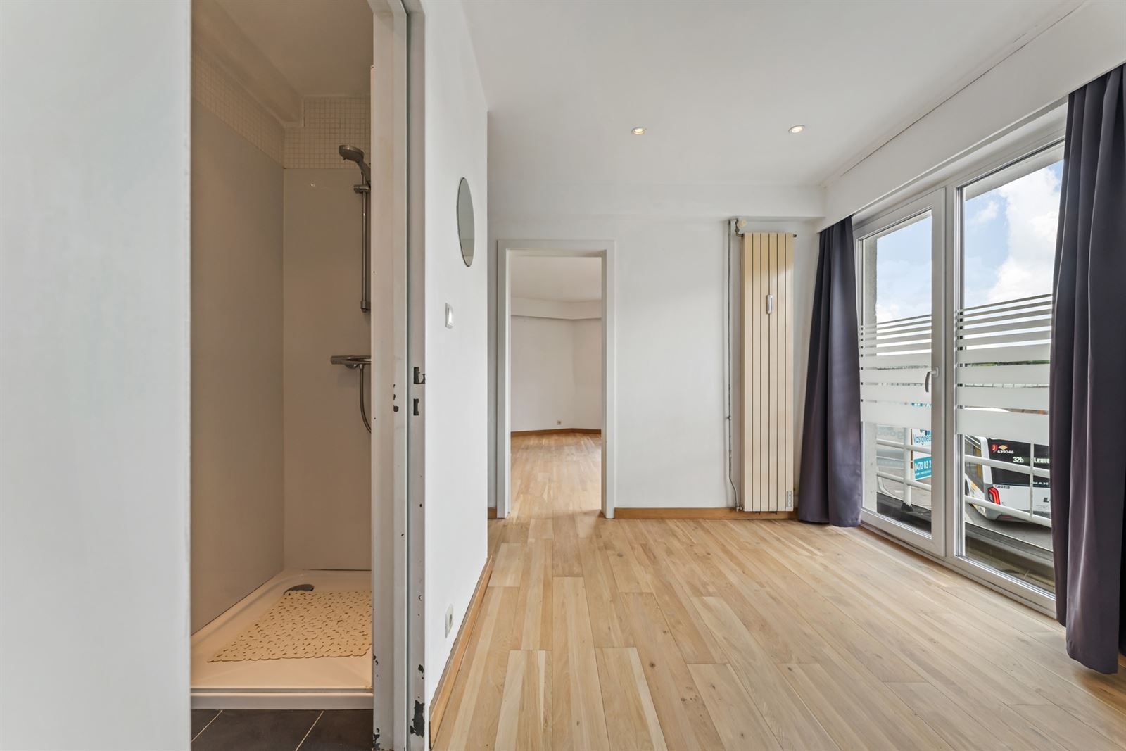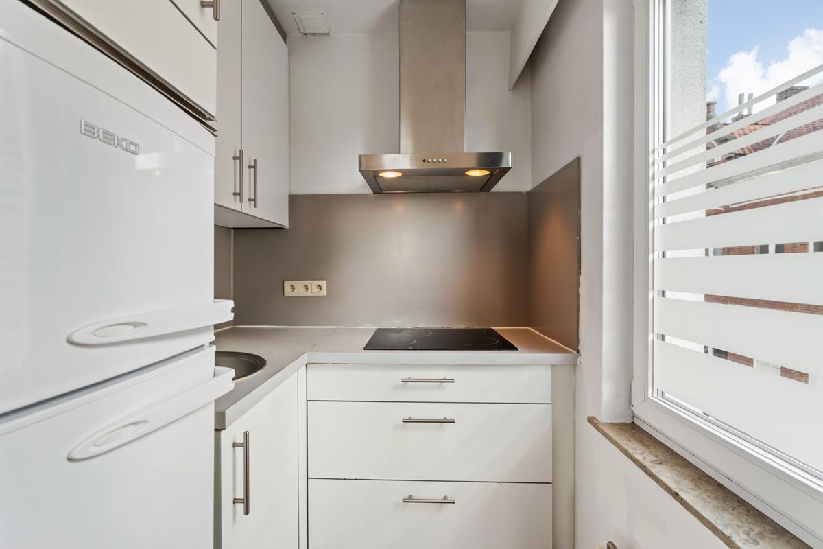 Indeling: Lichtrijke leefruimte, keuken (voorzien van kasten en toestellen), badkamer (voorzien van lavabo, instapdouche & toilet), ruime slaapkamer.
