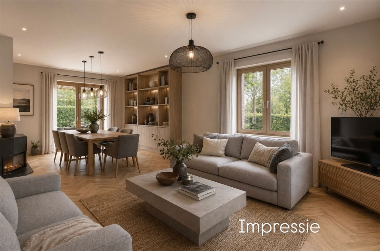Indeling: Via de inkomhal- en nachthal bereik je een afzonderlijk toilet en de lichtrijke leefruimte met open keuken, uitgerust met kasten en toestellen. Verder zijn er twee slaapkamers, een badkamer met lavabo en ligbad, een praktische wasplaats en een inpandige garage.