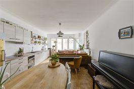 Deze woning is gelegen op een toplocatie, midden in het groen, met zicht op natuurgebied. Op de gelijkvloerse verdieping bevinden zich een inkomhal met apart toilet, een mooie lichtrijke leefruimte met open keuken, een kamer die dienst kan doen als bureau of slaapkamer, een badkamer, een ruimte die nu dienst doet als s...